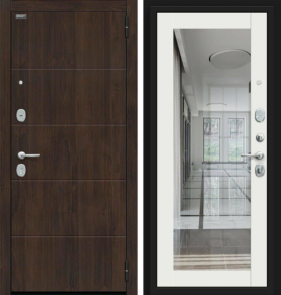 Семь усиливающих уголков и защитный карман для замков. Дополнительную стойкость ко взлому обеспечивают два противосъемных штыря.